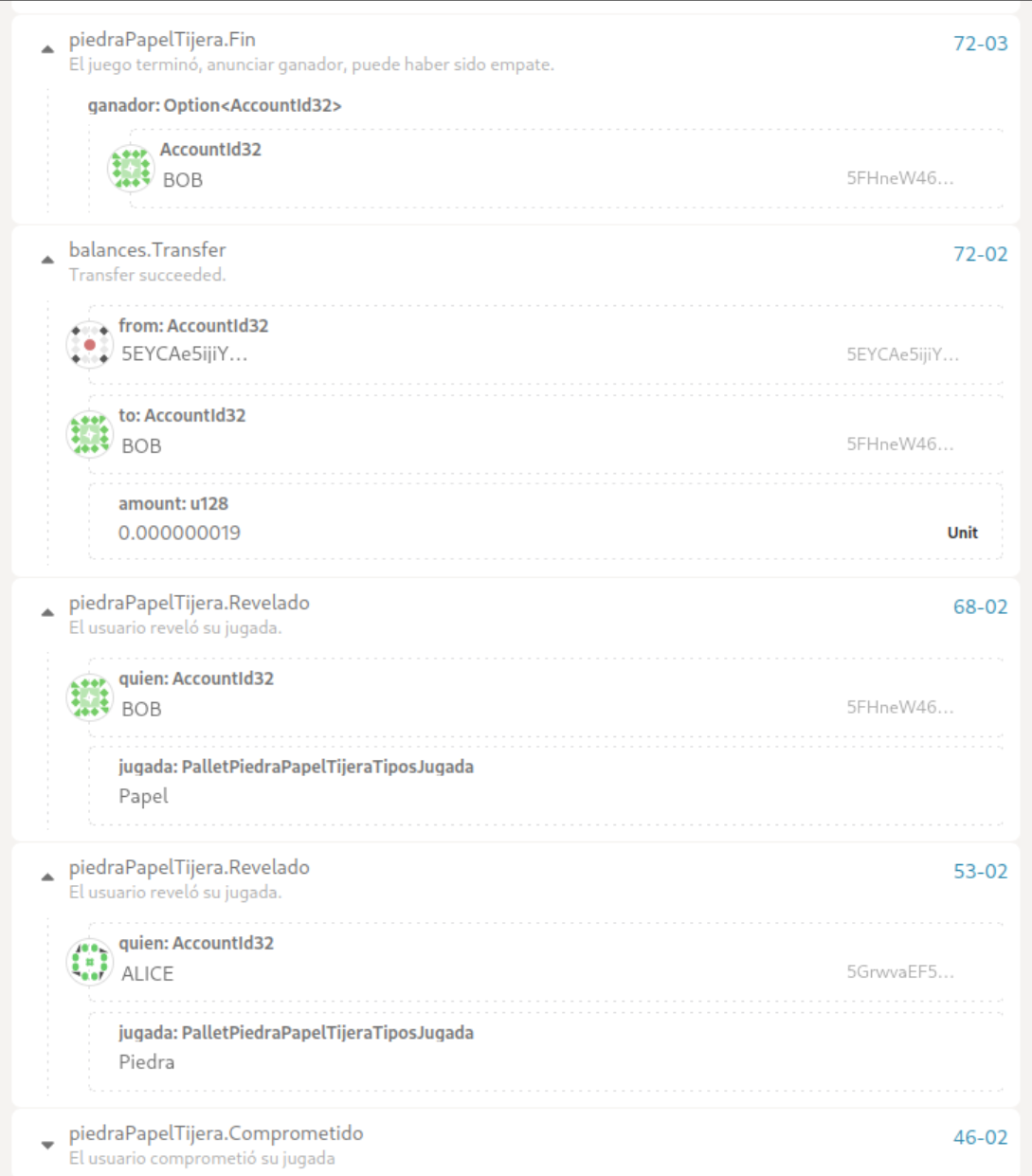 StorageMapde partidas a jugadores. - Crear una UI para jugar de manera más cómoda que con Polkadot JS Apps. Ayuda: leer la documentación de Polkadot JS.